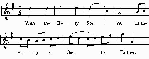 Now I had my three countermelodies. All I had to do was introduce each voice, then choose one of the parts shown above to continue it when the next voice came in. I did come across a minor snag-- not all the parts I had come up with would work as a bass line (to use the technical term, it was not "invertable" counterpoint). However, since the choir was accompanied by an orchestra, this was easily remedied by having the organ, cellos, or bassoons fill in the missing notes on the bottom. (Click here for the finished fugue on Midi.)